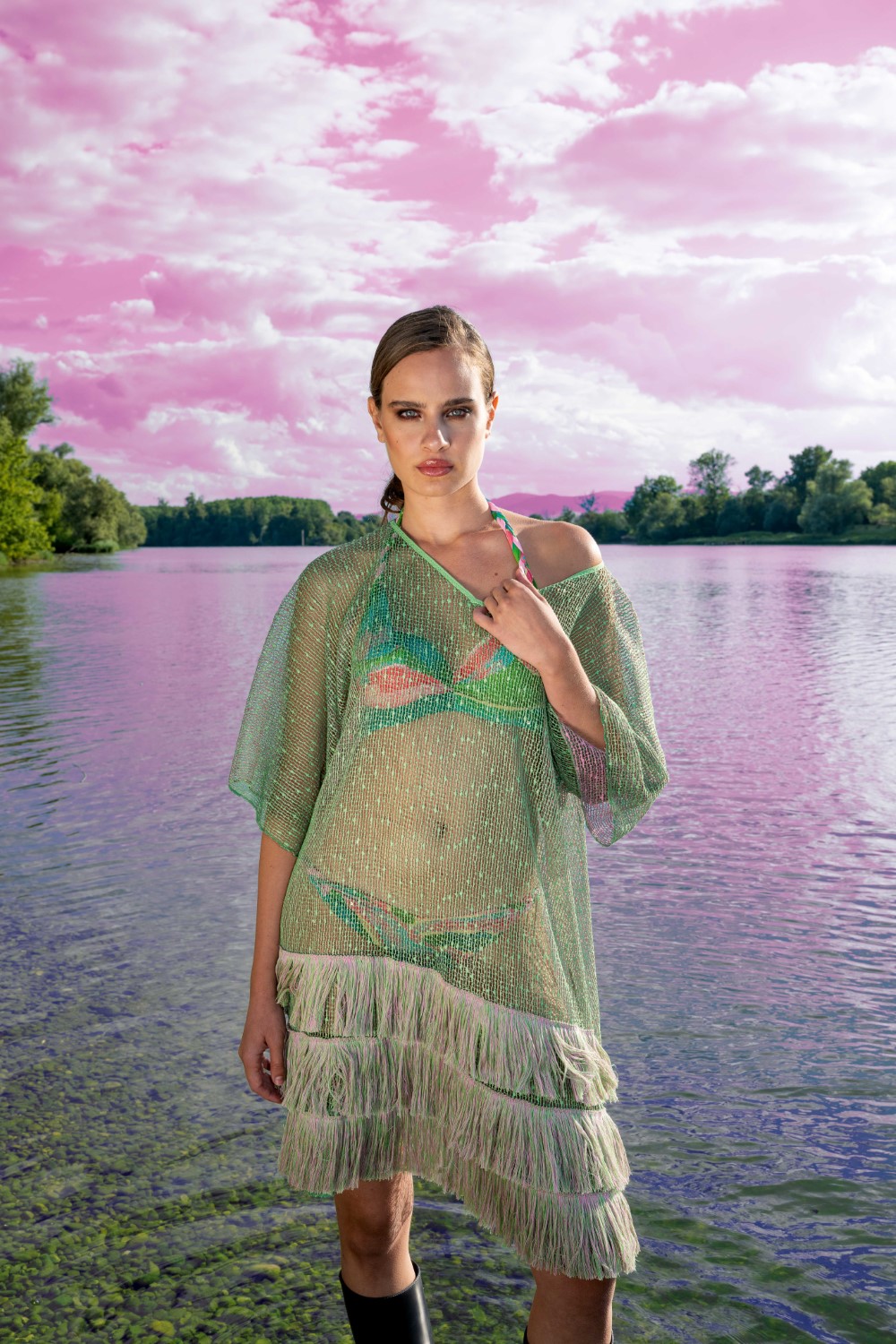 La collection Duo sublime l’art du beachwear par le jeu des transparences et du mouvement. Ses pièces maîtresses (robes et paréos) sont confectionnées dans un filet à franges bicolore, offrant un effet moiré captivant. C’est la ligne parfaite pour habiller vos instants au soleil.